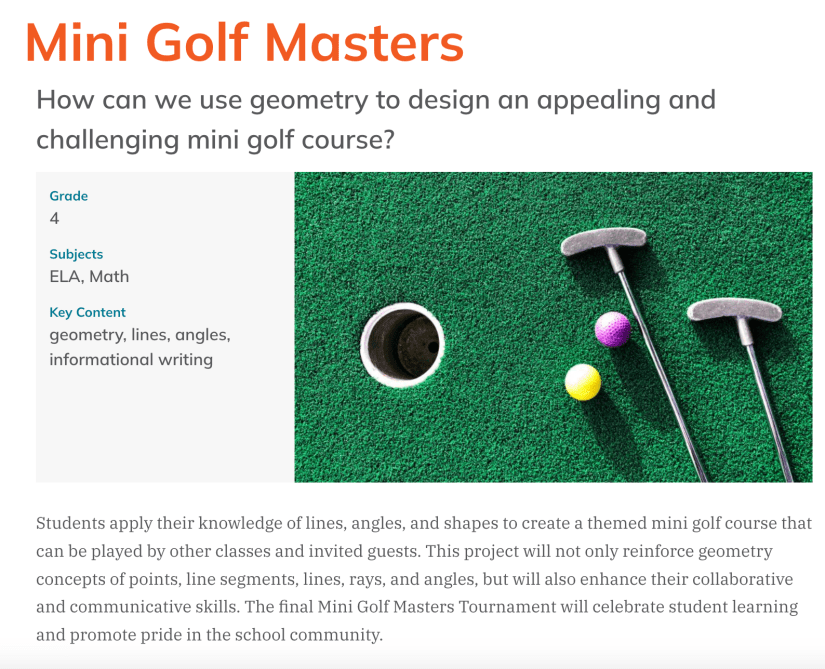 This page features project-based learning resources with libraries of ready-to-use projects for your classroom. While the focus is on finding mathematics-specific projects, many of these sources also offer ideas for other content areas. Each accompanying description is designed to help you quickly identify which resources best fit your needs.