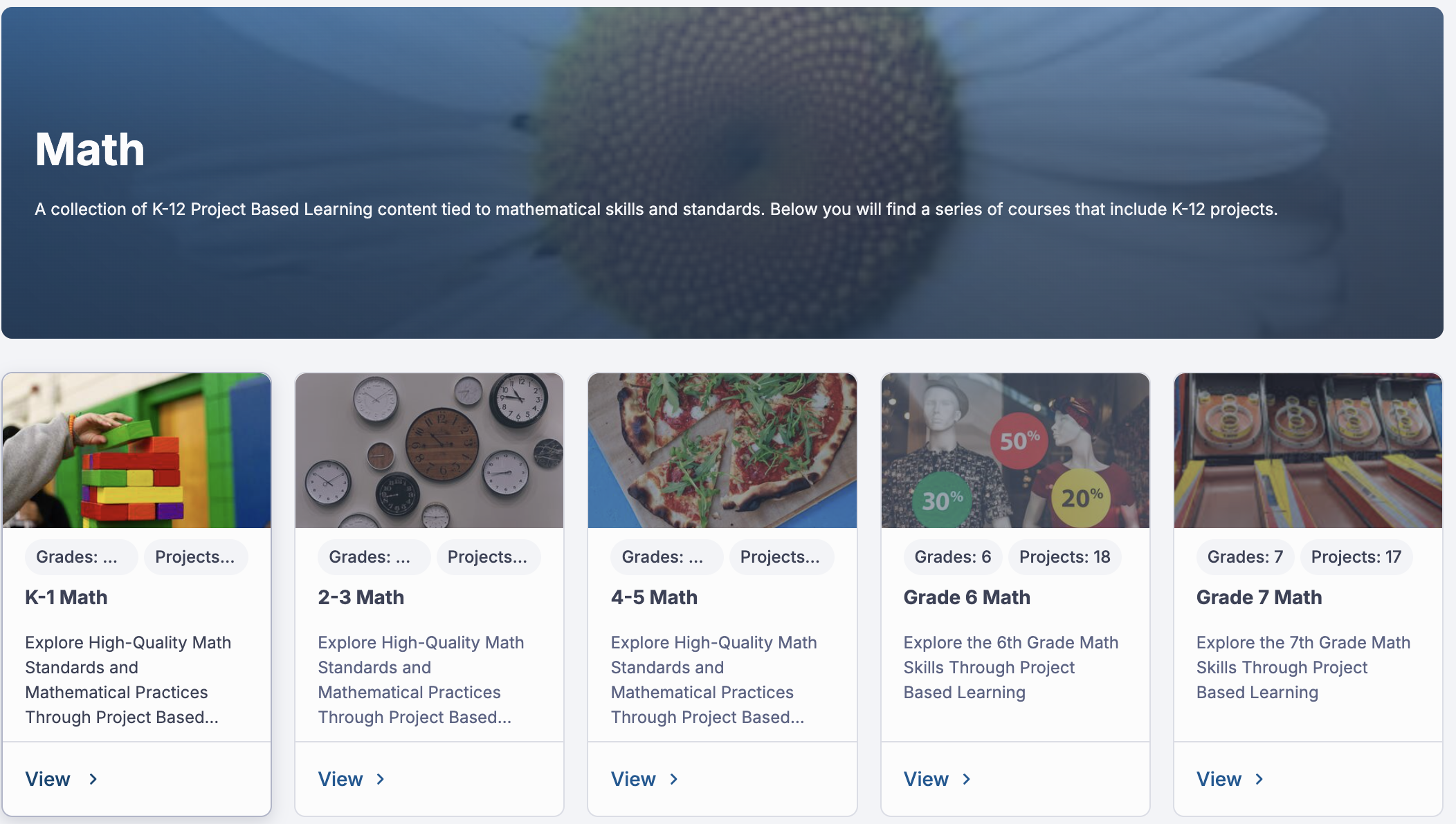 Defined Learning hosts an extensive set of career-based projects for all disciplines, including every k-12 mathematics course. They are designed to provide students with the opportunity to engage with the disciplinary work that is done within real-world careers and provide teachers with rubrics associated with final products that students create as part of the project. They are intended to be the overarching project idea that connects disciplinary content like mathematics to real-world experiences, and thus the curriculum relies on teachers to connect their daily lesson plans to these project ideas. This website is not free, but a great investment for a school wanting to implement PBL.