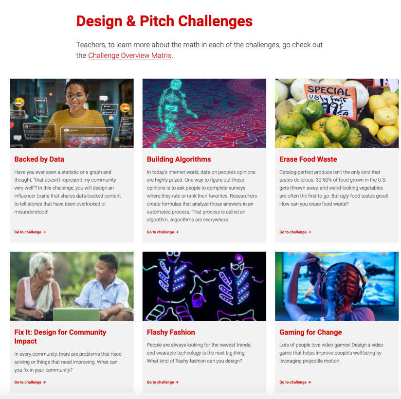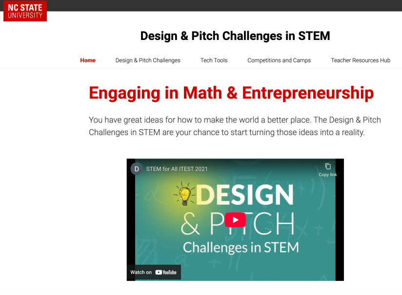Design & Pitch Challenges are a free set of 18 entrepreneurial challenges designed by NC State researchers to engage students in authentic mathematics learning. They span mathematics topics across middle school and high school, positioning students as entrepreneurs who design a product or business that can help to solve problems in the world and their local communities. The website includes enough resources that a teacher could run it without any supplementary resources, but many teachers also like to use some of their daily lessons alongside the project to support their students mathematical learning journey. The website also provides a teacher resources hub that includes a teacher guide, a set of ready-to-use slide decks for each challenge, and various tips documents about implementation and community engagement.
