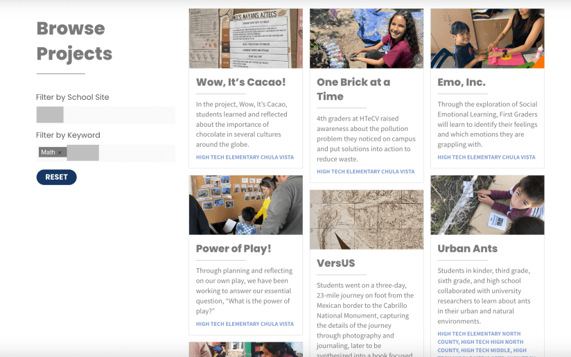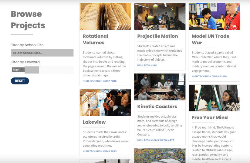 The High Tech High Project gallery is a free and extensive list of projects that have been implemented at various High Tech High schools. The High Tech High model is well known for its hands-on project-based learning approach, now spanning all grades k-12. In the gallery, you can search from a drop down menu of discipline-specific keywords. The set of mathematics projects is multiple pages long! When you click on a project, you will find images of the students’ experience during the project implementation and a description of the different products that students had to create over the course of the project. It is a lot like reading the story of a project. It is very ideas-based, so you will need to create your own resources to support your students, such as rubrics or daily lesson plans, but you can get some amazing project ideas from this website!