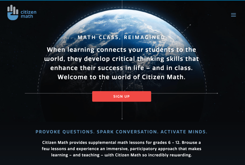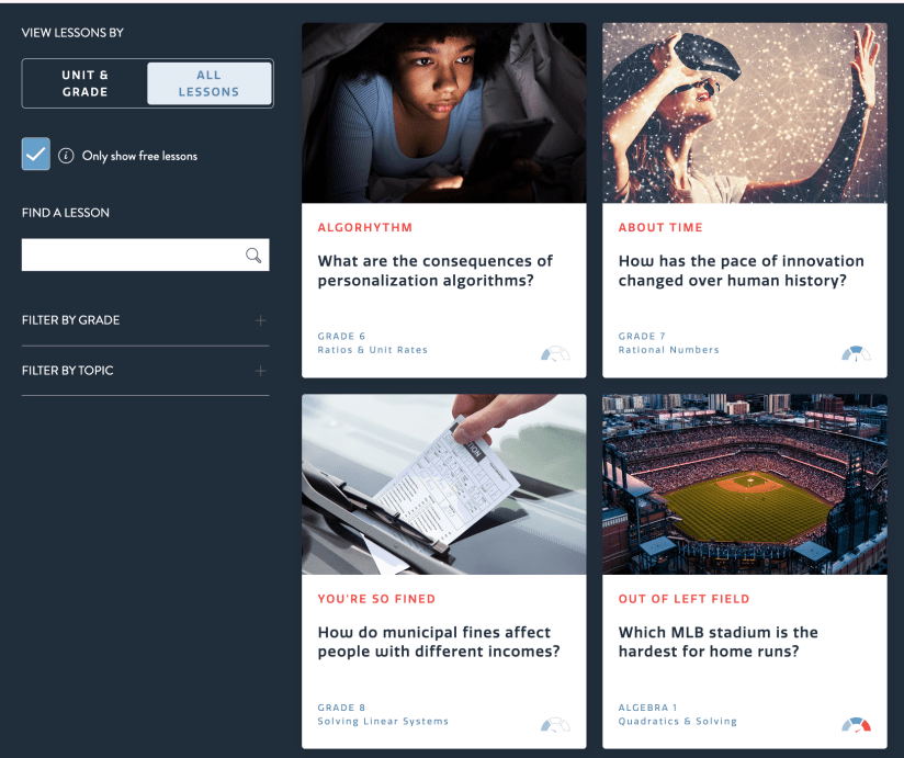 Citizen Math (formerly Mathalicious) is a resource recommended to me by multiple PBL math teachers who participated in my dissertation study. While they position their resources as supplemental lessons based in the real-world, many of the ideas are worthy of being project ideas. As you can see in the photos, some of the lessons are freely available and you can access both the idea and the full student and teacher handouts while some only provide the idea for free and require payment for the handouts. I have not had the opportunity to use it myself, but I look forward to exploring it more in the upcoming year!